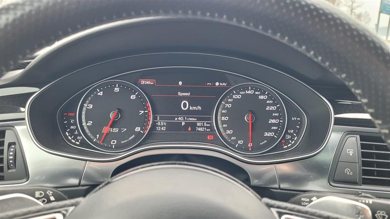 This 2014 Audi RS7 is a standout example of Audi’s high-performance craftsmanship, offered in exceptional condition with only 75,000 km and one meticulous owner from new. Backed by a clean CarFax, this RS7 has been responsibly maintained and clearly cherished, showing minimal wear inside and out. The sleek, aggressive styling is matched by Audi’s legendary Quattro all-wheel-drive system and a powerful twin-turbo V8 that delivers exhilarating performance with refined everyday drivability. Inside, the cabin is in excellent shape, showcasing Audi’s signature blend of luxury and technology. Premium materials, supportive sport seating, and a driver-focused layout create an environment that is equal parts comfortable and performance-oriented. This RS7 presents as a rare opportunity to own a well-kept, enthusiast-spec performance sedan with documented history and outstanding condition. Ready to be enjoyed, it stands out as a premium choice in the high-performance pre-owned market. We offer finance and lease. Trade welcome!!! ***Pricing is subject to $595 Documentation Fee & Taxes. D50202***